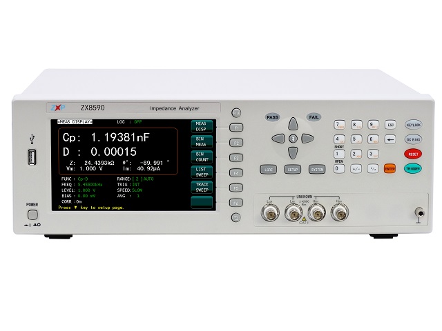 ZX8590系列高頻精密阻抗分析儀:使用自動平衡電橋技術(shù)及四端對開爾文測試端、測量頻率范圍涵蓋20Hz~25MHz,最小分辨率1mHz,基本測量精度可達0.05%。