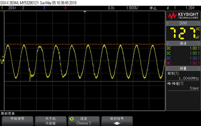 使用簡易運放阻抗測量電路1MHz測量6.8nF Lcur(虛地點)實測波形如下: