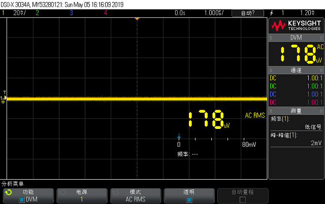 而ZX8590使用的自動平衡電橋測試原理,把上圖簡易的測量運放改進成:Lpot檢零電路,0度90度數(shù)字檢相及調(diào)制解調(diào)電路,Lcur高頻驅(qū)動電路等等組成的矢量負反饋網(wǎng)絡。從而保證了測量電路的虛地端更接近理想。下面2圖是簡易運放阻抗測量電路以及自動平衡電橋阻抗測量電路Lcur(虛地點)的波形實測對比: